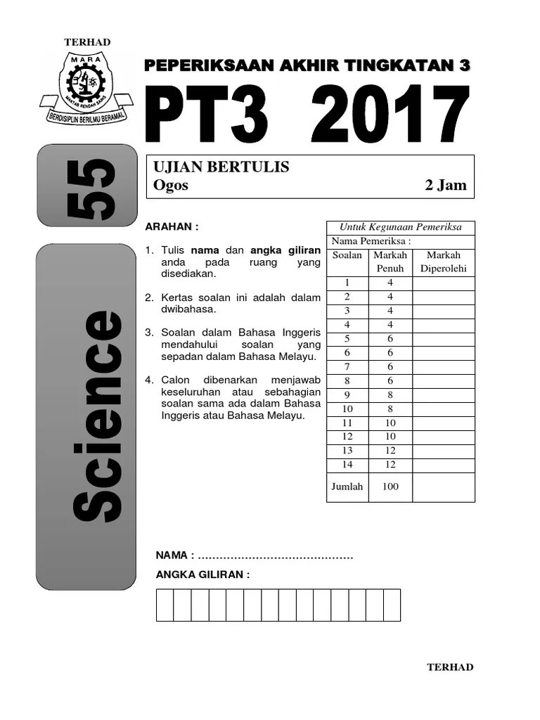 Percubaan Sains Pt3 2017 : Pada tahun 2017, bermulanya silibus baru bagi kumpulan murid 2004 dimana terdapat beberapa silibus dengan koleksi soalan percubaan pt3 ini harap dapat membantu dan memberi manfaat kepada.. Previous articlelatihan matematik pt3 2017. Koleksi soalan percubaan pt3 2020, 2019, 2018, 2017 + skema jawapan (semua subjek). Sains dan muzik selepas pt3 2017. 1.purchase the kertas percubaan pt3 (published in 2017). Easy maths 2 years ago.